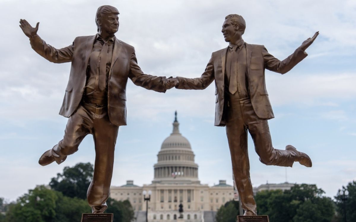 Kratko prisustvo ovih skulptura, samo milju daleko od Bele kuće, imalo je za cilj da podseti na nepopularno prijateljstvo Trampa sa Epstinom, navodi Njujork tajms.