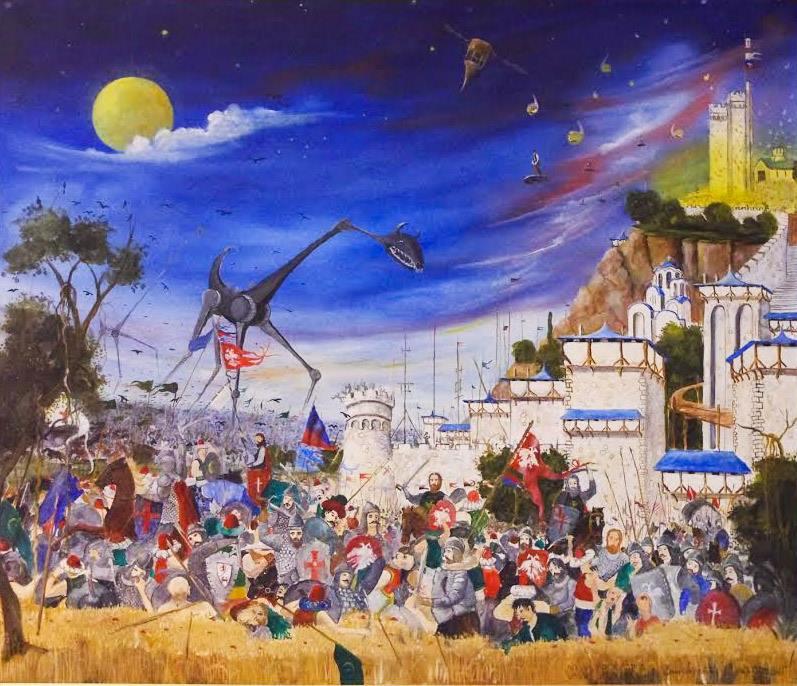 -Dosta me zanimala istorija, i naša i svetska, čitao sam knjige, slušao priče starijih iz sela, mojih dede i babe, pa moje slike često imaju neku istorijsku pozadinu, prate istoriju srpskog naroda od postanja do danas, od Lepenskog vira pa nadalje. Čest motiv su mi srpski junaci, stari vitezovi, a naročito vojnici iz Prvog svetskog rata, divovi koji su pregazili Albaniju, Kajmakčalan, Solunski front. Tema srpske istorije je neiscrpna, možete da se njome bavite ceo život. A za našu diku, Nikolu Teslu, kažu da je čovek koji je sišao sa nebesa da pomogne čovečanstvu, da ga njegovim izumima uvede u nove civilizacijske tokove.