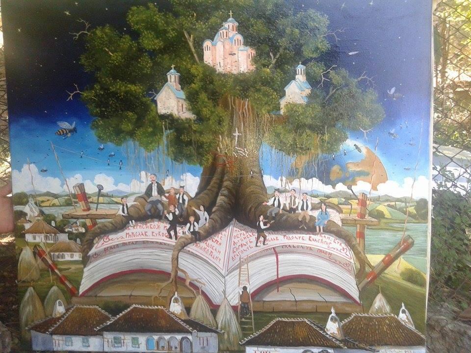 Zoranove slike su pune detalja, u njih se valja dobro zagledati . Na slici „Teslin narod“, koja je pratila snimanje istoimenog dokumentarnog filma Željka Mirkovića, koji je prošle godine bio srpski kandidat za Oskara, Zoran je naslikao brojne znamenite Srbe, koji su obeležili vreme za nama.