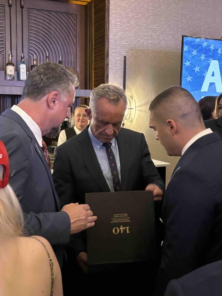 Prethodno su srpski biznismeni imali važne susrete sa američkim senatorima i kongresmenima iz redova Republikanske partije, a dvojica među njima, Ranko Ristić i Filip Milivojević, su ranije tokom večeri imali priliku da Robertu Kenediju, jednom od najbližih Trampovih saradnika, uruče prigodnu monografiju o 140 godina diplomatskih odnosa Srbije i Sjedinjenih Američkih država.