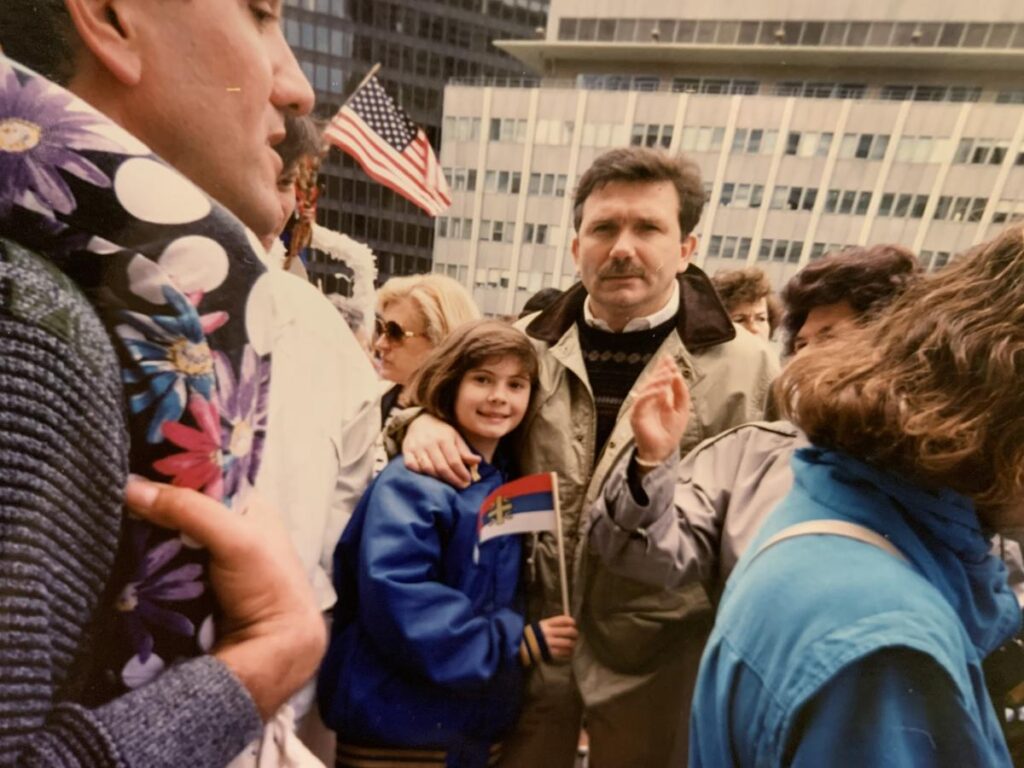 BORBA ZA SRBIJU: Sa demonstrantima ispred Bele kuće 1999. i sa ćerkom na srpskom festivalu