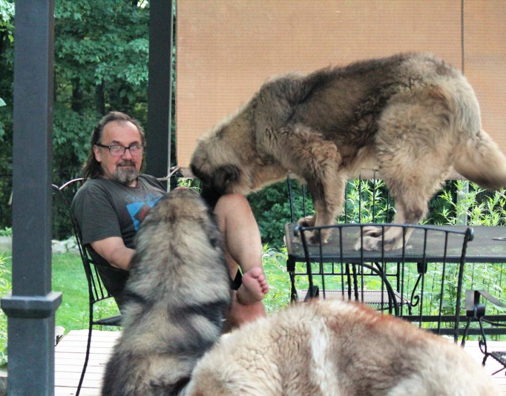 – Baš mi je drago što si me to pitao. Svi moji psi su došli kod mene iz urbanih sredina. Zemun, Beograd, Sarajevo… Nikad nisu videli ni omirisali ovcu! Kada sam kupio imanje 1997, rešio sam da probam i kupim ovce. Žena mi se tada prekrstila jer zna da ja gotovo ništa ne znam o njima. I kupim ja deset šetland ovaca. A moji psi, rođeni u Kvinsu i u Bruklinu, nikad videli ovce. Ja ogradio kao tor, smestio ih tamo, a moji psi videli nešto novo, strano, krenuli na onu ogradu, hoće da ih pojedu… Ja ih zaustavim, uđem u tor među ovce, hranim ih iz ruke. A moji psi seli okolo i gledaju. To mi je uzelo dva dana. Posle toga, otvorio sam vrata ograde i svi psi su ušli kod ovaca kao da su odrasli zajedno, to možete da vidite i na fotkama i video snimcima.