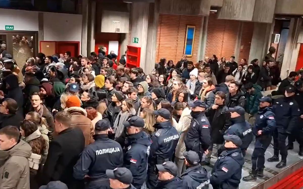 Policijska brigada koja je upala na Filozofski fakultet u Novom Sadu zbog odluke studenata i profesora da blokiraju zgradu zbog otkaza koji je uručen profesorki Jeleni Kleut potisnula je okupljene napolje.