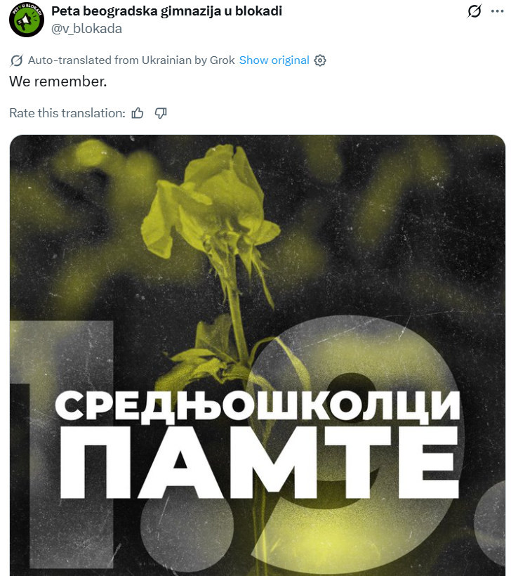 Inače, tog dana planirana je komemorativna šetnja u znak sećanja na stradale u padu nadstrešnice u Novom Sadu. Međutim, detaljan plan šetnje, kao ni satnica, još nisu objavljeni.