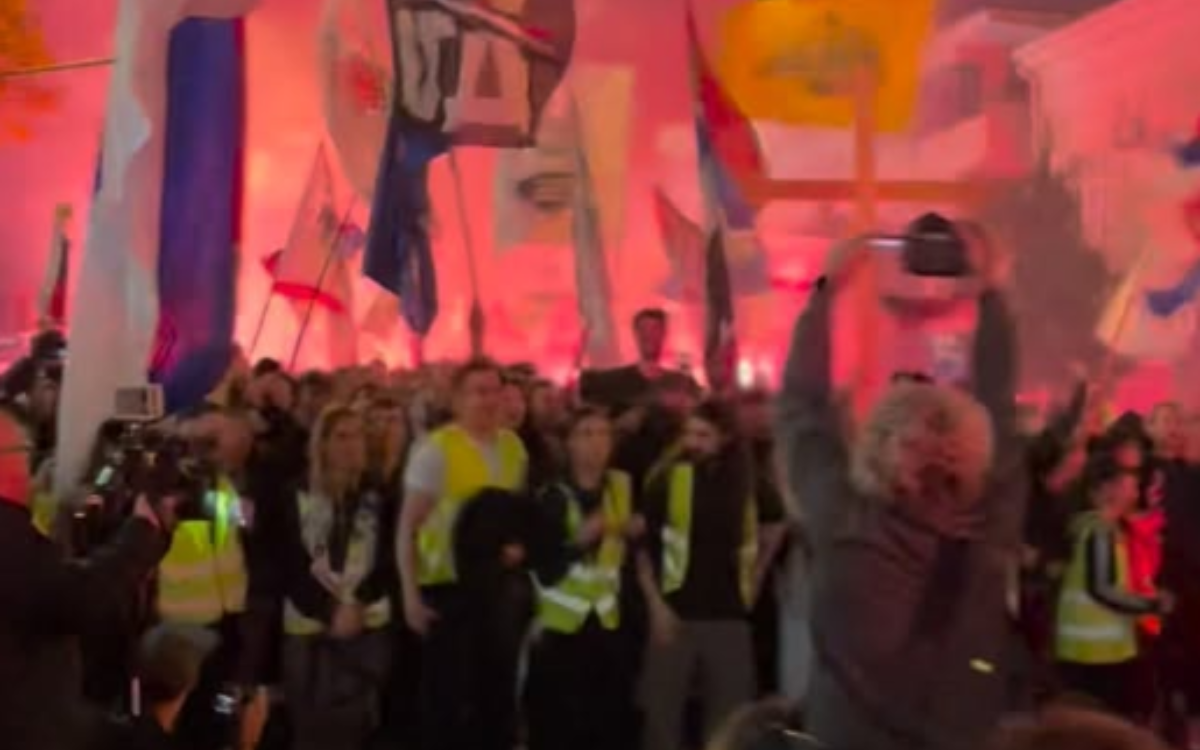 Okupljeni skandiraju „Inđija“, „Pumpaj“ i „Ko ne skače taj je ćaci“.