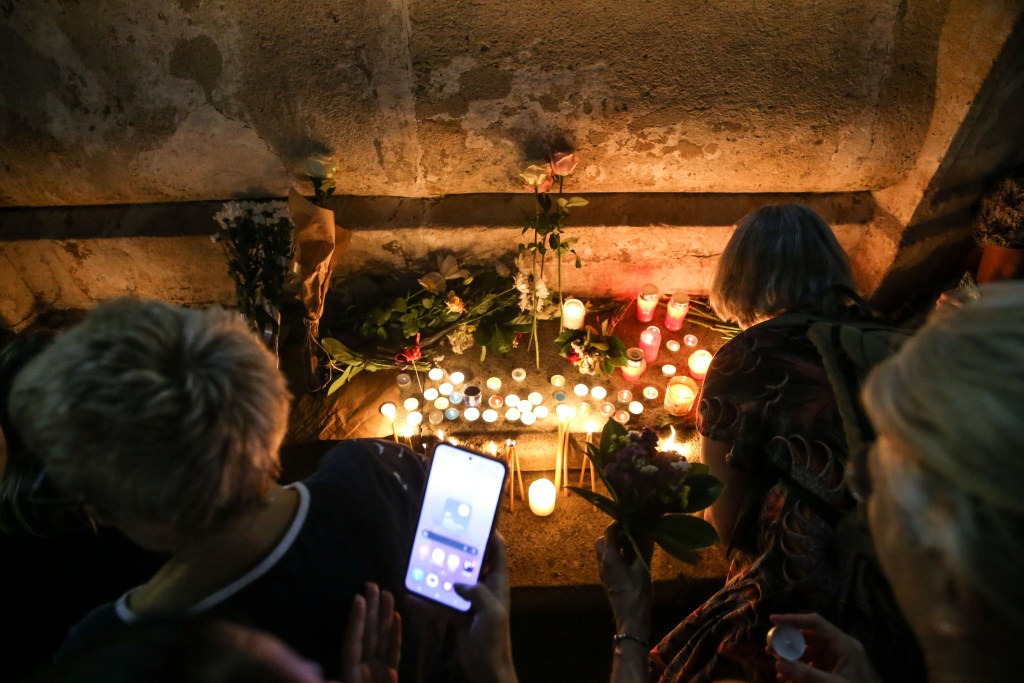 12, August, 2025, Belgrade – Citizens of Belgrade gathered at the Terazije fountain to light candles and lay flowers to honor Arsen and Matija Dedic and Gabi Novak. Photo: F.S./ATAImages