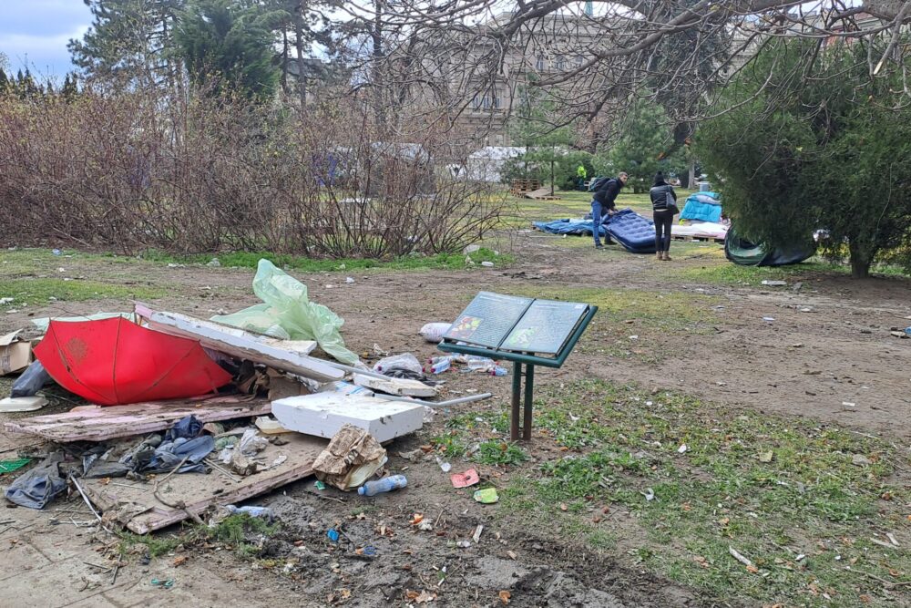 Ovaj park pretrpeo je značajna oštećenja usled postavljanja šatora, privremenih objekata, ali i protestnih aktivnosti ove grupe. Ograđivanje parka onemogućilo je pristup građanima, a stručnjacima otežalo sagledavanje obima nastale štete.