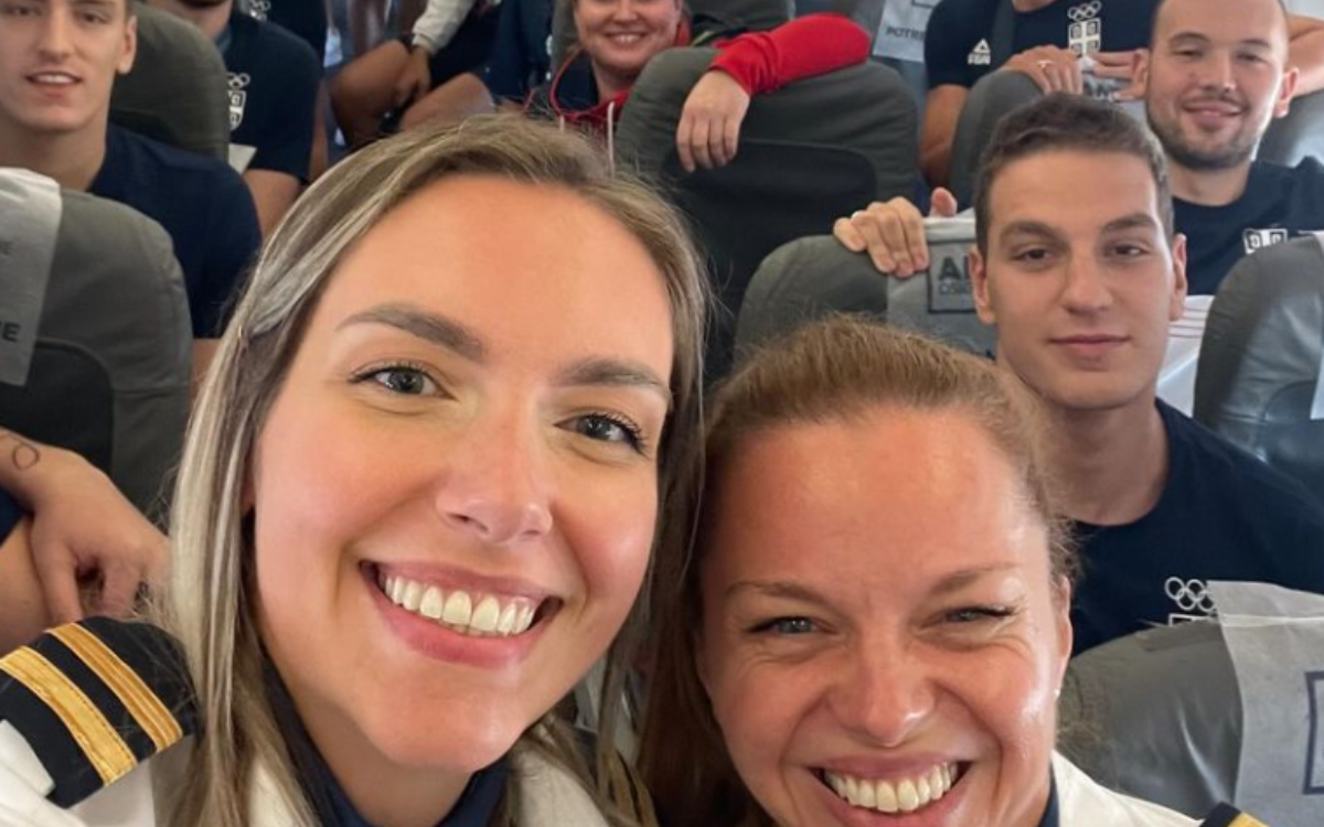 Redovan let Er Srbije iz Pariza do Beograda ovog puta nije bio uobičajen putnici su bili okićeni olimpijskim medaljama, a tokom leta se slavilo, dok su avionom upravljale dve dame, kapetan Vesna Bućan Aleksić i prvi oficir Dina Lalović.