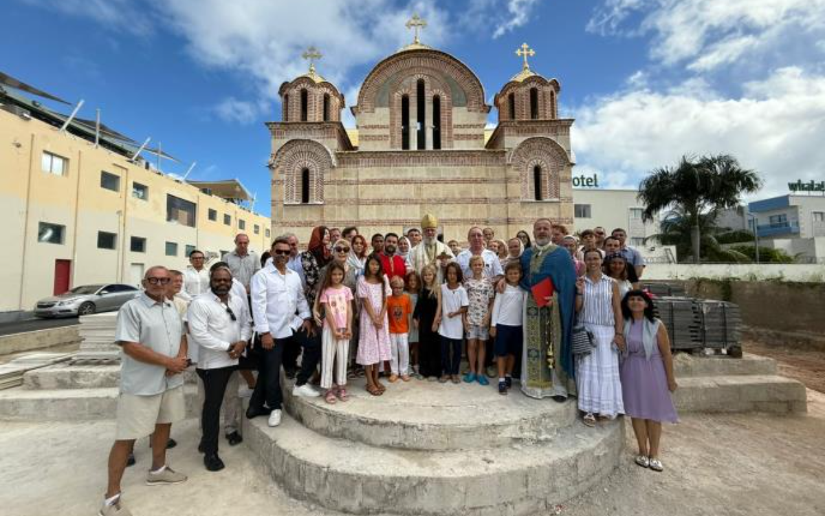 Hram je izgrađen po blagosloslovu blaženopočivšeg Mitropolita Amfilohija i njegovog naslednika episkopa Kirila. Sa episkopom Kirilom sasluživali su otac Simeon Sergio Lopez Kolumbijanac, inače svestenik SPC u Medeljinu i arhimandrit Evstatije Miloš Azdejković koji inače i vodi poslove oko gradnje ovog jedinog pravoslavnog hrama na Karibima. Takođe da napomenemo da su se crkvena zvona u nedelju čula po prvi put u ovom delu sveta, zahvaljujući donatorima ovih zvona porodicama Miranović iz Podgorice, Trajkovski i Stefanov iz Skoplja.
