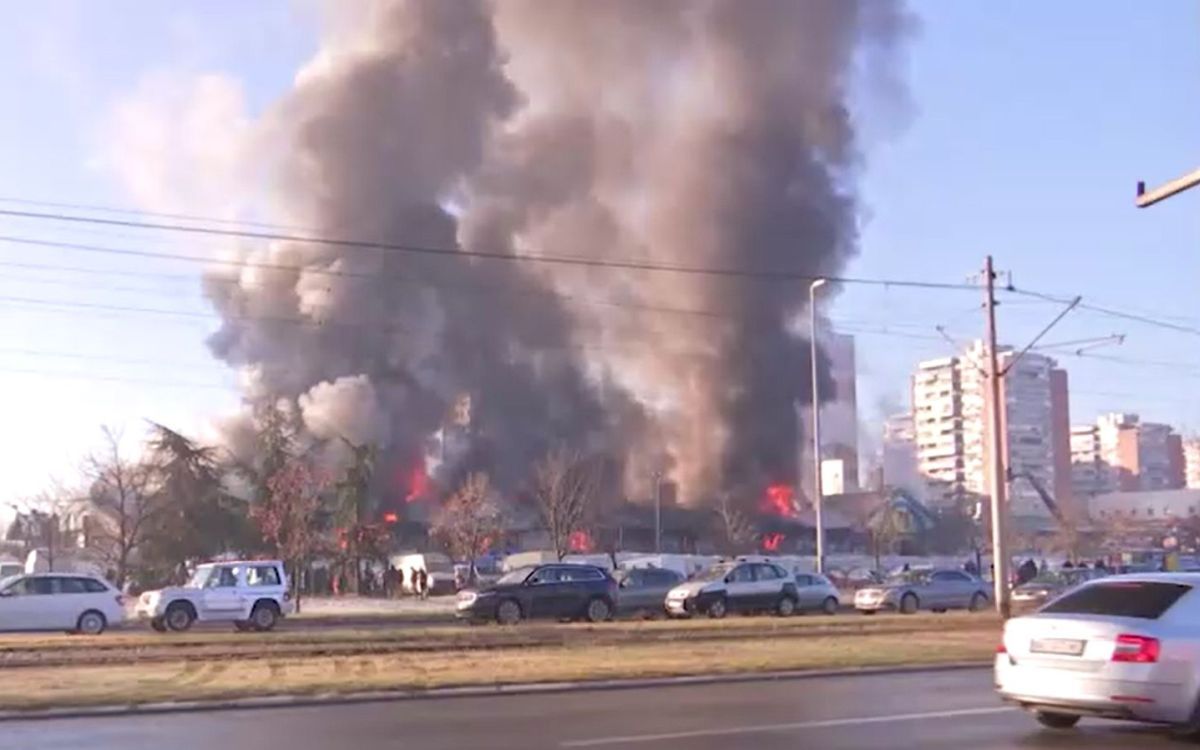 Sedamdeset šest vatrogasca sa 25 vozila, kao i dva helikoptera MUP-a gase požar u Kineskom tržnom centru u Bloku 70 na Novom Beogradu. Prema dosadašnjim informacijama nema povređenih. Načelnik Sektora za vanredne situacije Luka Čaušić rekao je da su najverovatniji uzrok eksplozija koje su se čule plinske boce iz restorana brze hrane koji se tu nalazi.