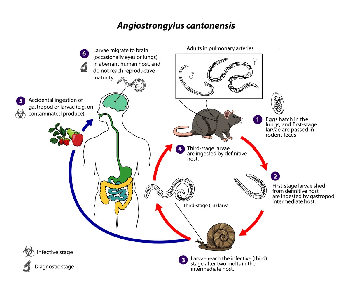 Kad se plućne nematode pacova nađu u čoveku, rade ono što obično rade kod pacova – kreću se ka centralnom nervnom sistemu i mozgu.